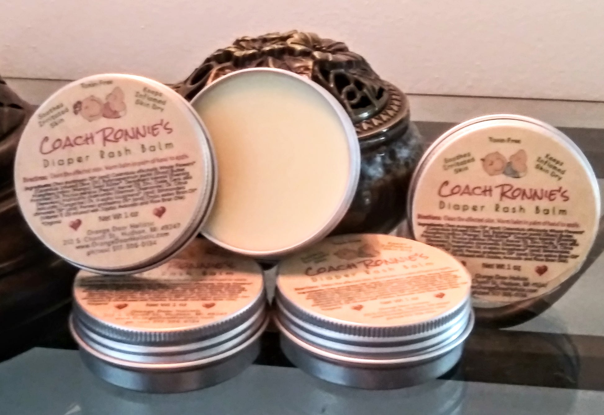 'Coach Ronnie's Diaper Rash Balm' is a truly soothing balm with ingredients that benefit the process of healing irritated, rashy, and inflamed baby bottoms!